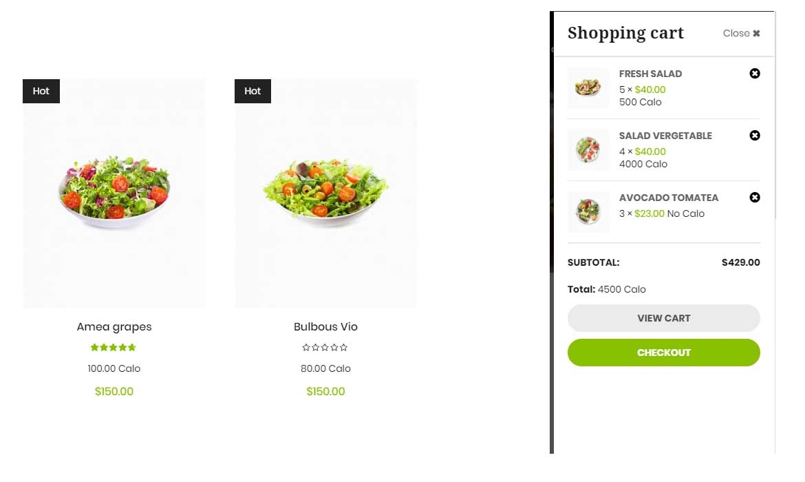 you needs set calo for each product.