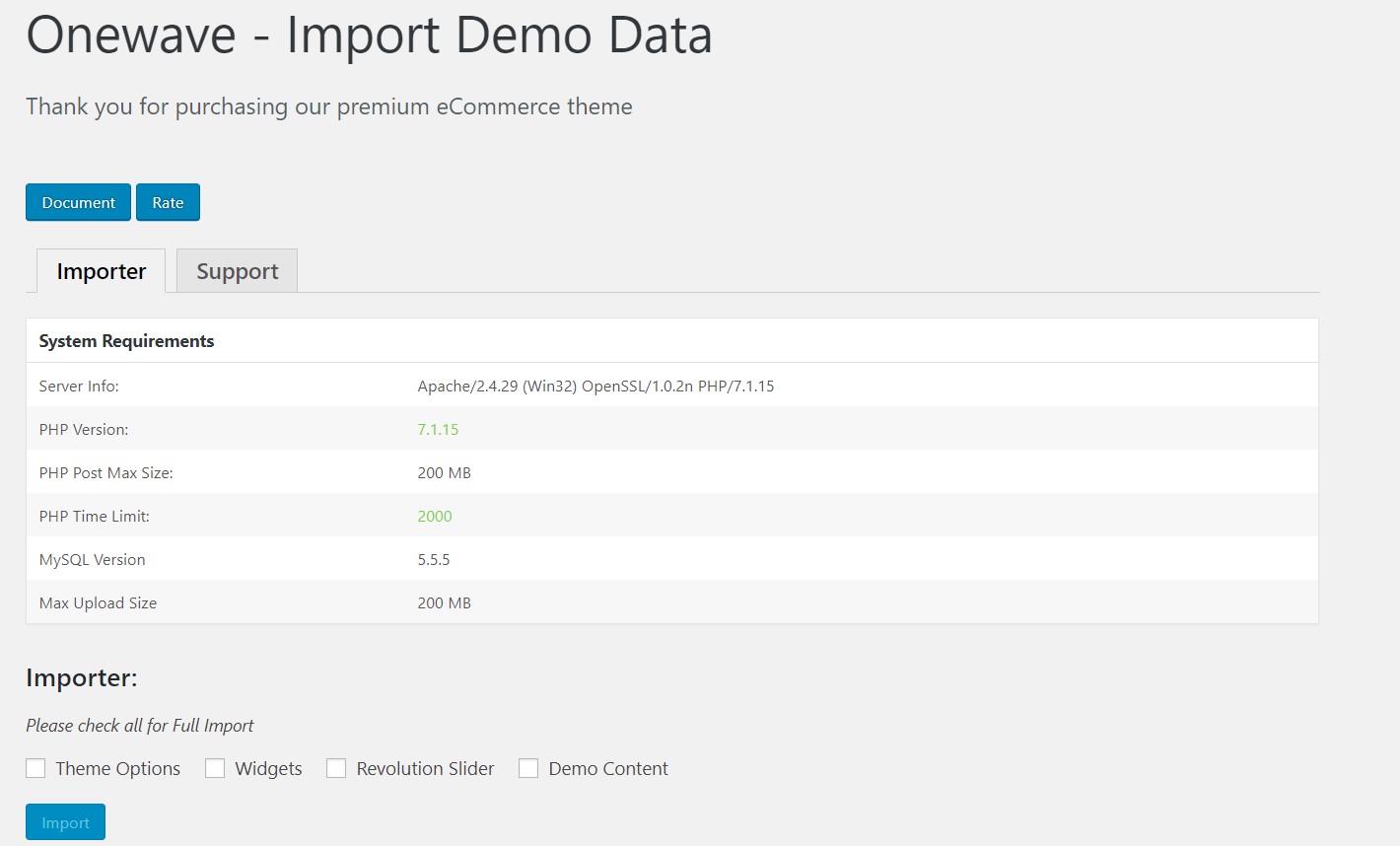 Check all for Full Import. If the Demo Content import failed. Please check Demo Content and import again