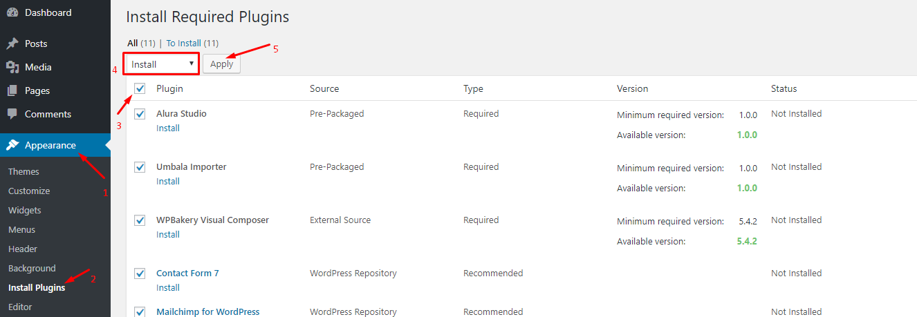Before install the theme, you need install and active required plugin.